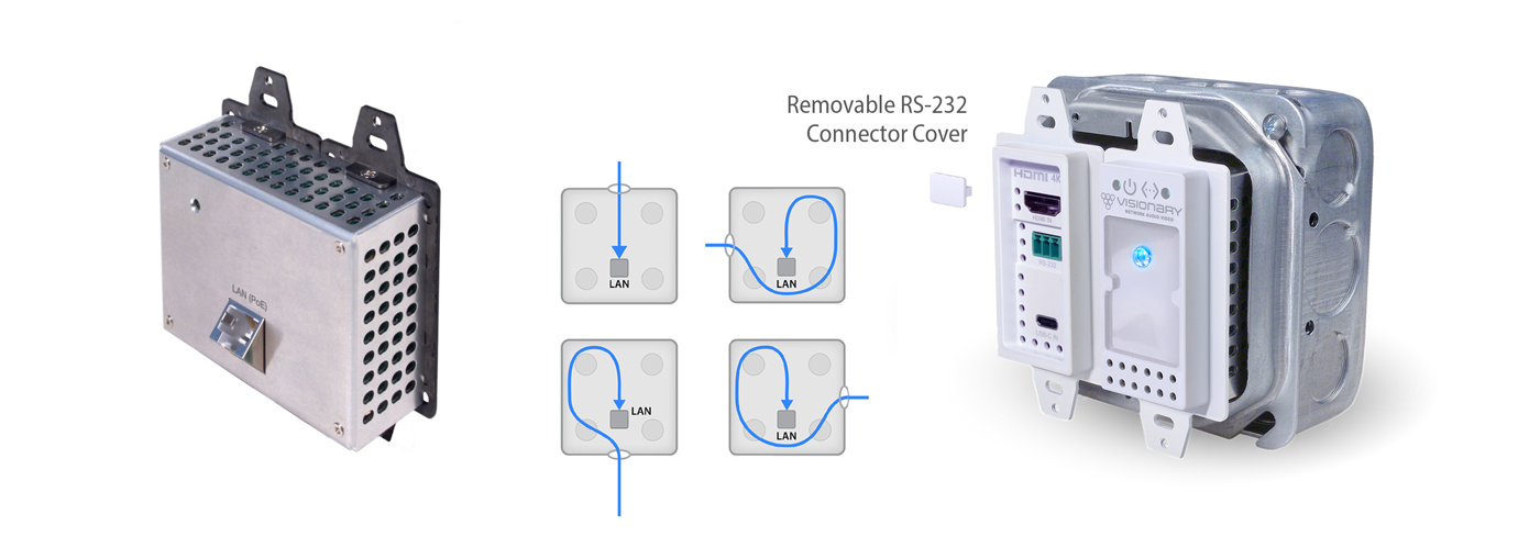 Experience the innovation of the DuetE5-WP-C-BT 4K60 4:4:4 Wallplate AV-over-IP Encoder from Visionary – combining state-of-the-art connectivity, intuitive installation, and uncompromised network performance.